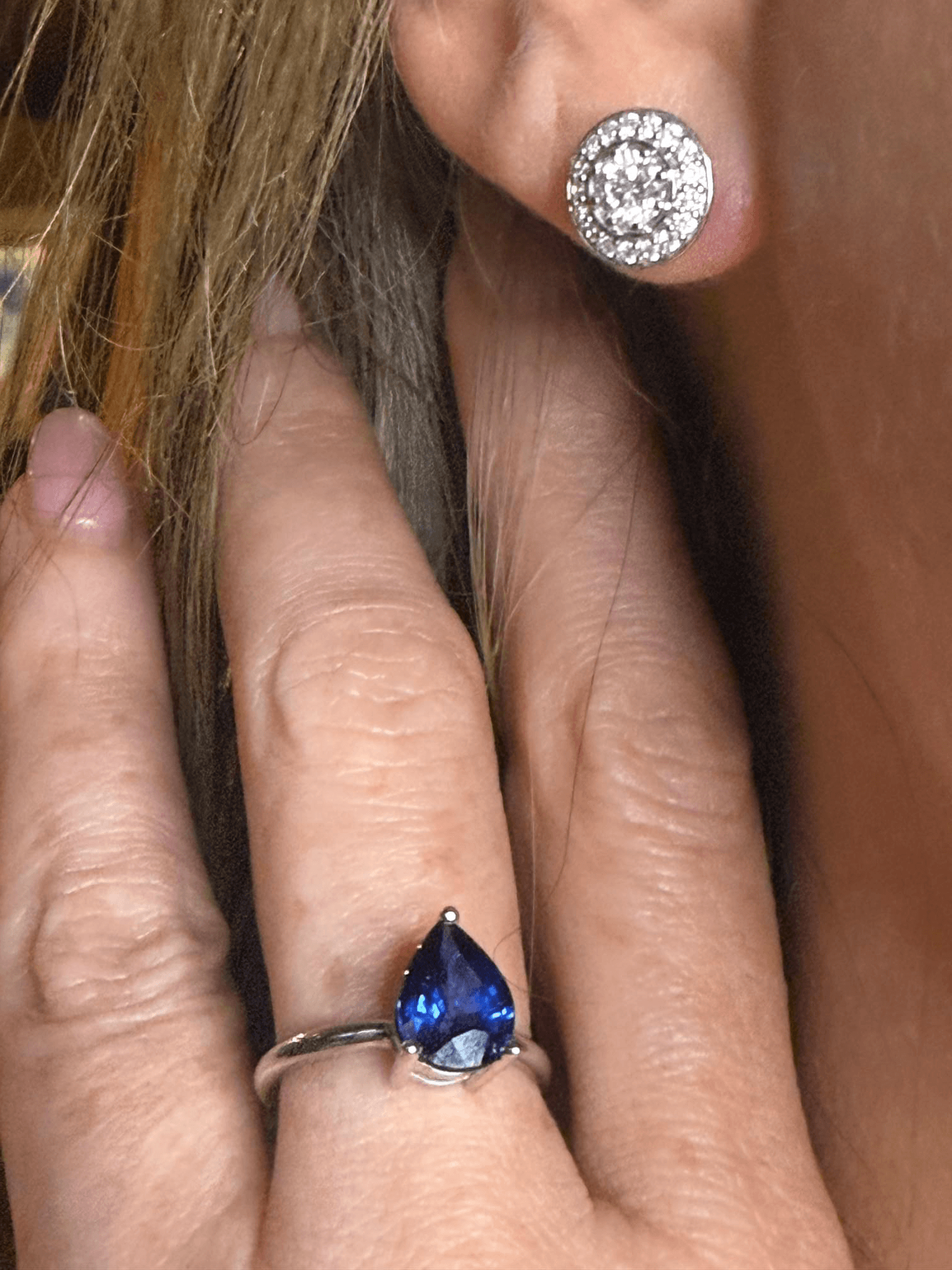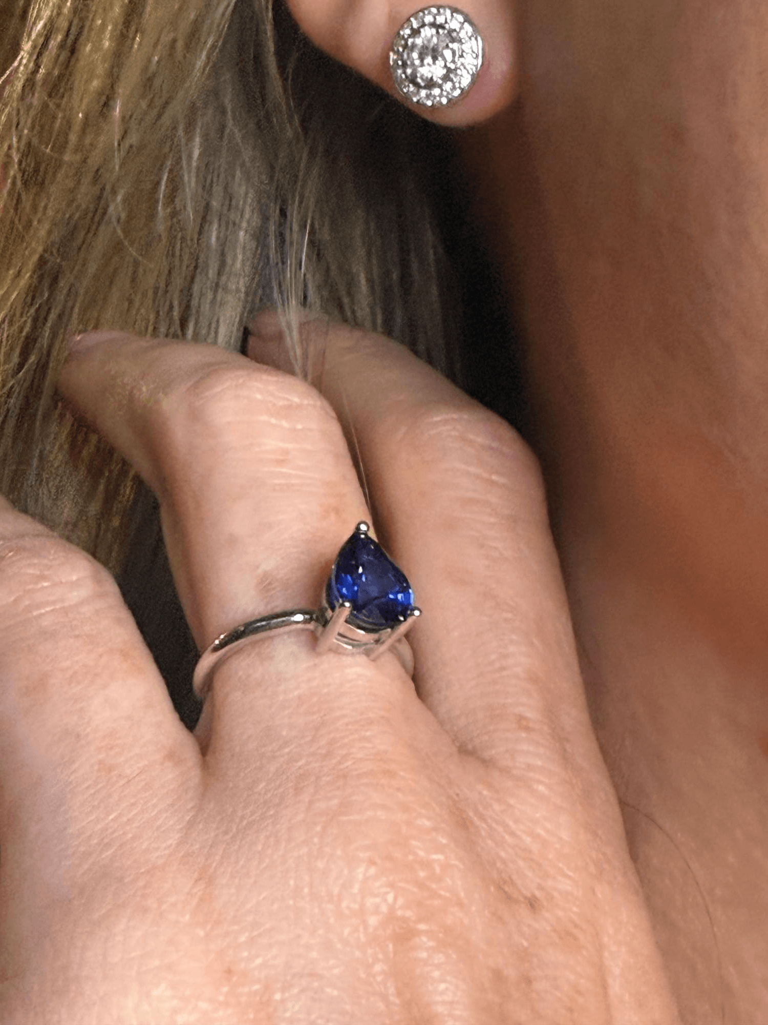 Un anillo solitario que irradia sofisticación atemporal. Su protagonista es un zafiro azul intenso tallado en forma de gota o lágrima, montado en garras sobre una estructura de oro blanco o platino que realza la pureza del color. El diseño limpio y minimalista permite que la piedra capture toda la atención, reflejando profundidad, serenidad y elegancia clásica. Ideal para quienes buscan una joya refinada con un toque distintivo.