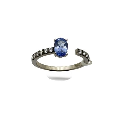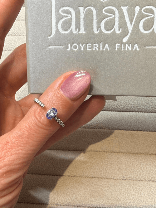 Elegante y contemporáneo que captura la serenidad del cielo en un diseño refinado y moderno. Su topacio azul de forma oval destaca por su luminosidad cristalina y su vibrante tonalidad, sostenido por un delicado engaste de cuatro garras que permite el máximo ingreso de luz para potenciar su brillo natural.