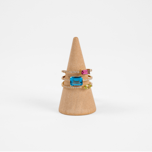 Las bandas están delicadamente engastadas con diamantes en pavé, aportando brillo continuo y refinamiento al diseño. Es una joya versátil y audaz, ideal para quien busca una pieza distintiva que combine lujo, color y estilo actual.