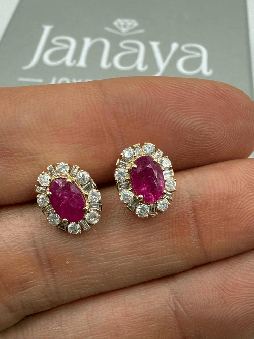 Aretes Rubí y Halo Diamantes
