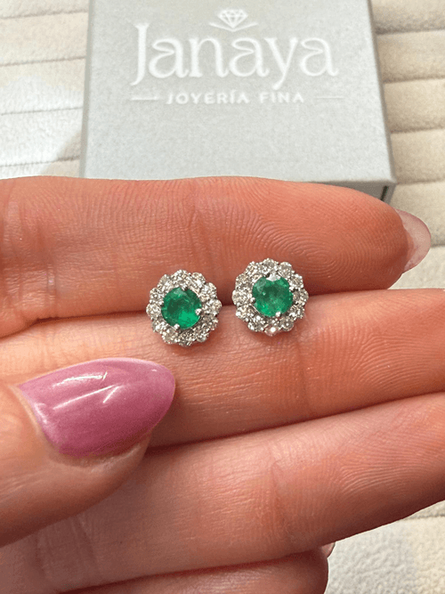 Aretes Studs Esmeralda con Halo Floral