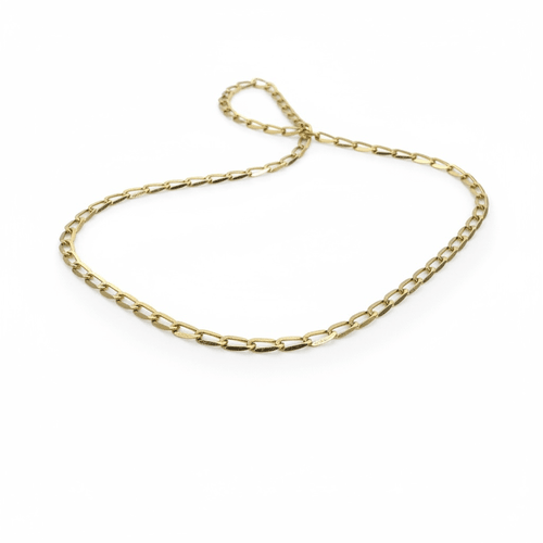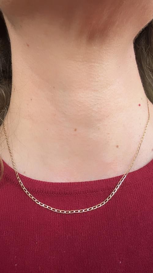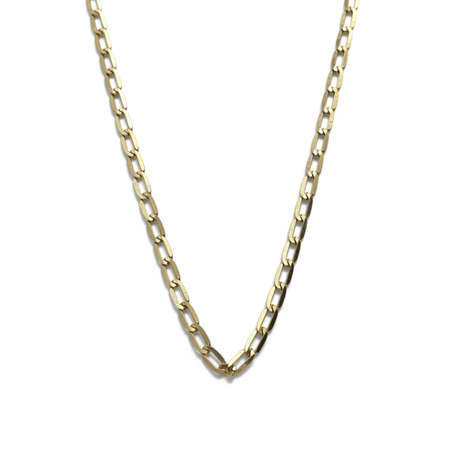 Cadena de oro 14K estilo eslabón alargado, con eslabones rectangulares finos y elegantes. Su diseño ligero y moderno la convierte en una pieza ideal para usar sola o combinar con dijes delicados. Un clásico contemporáneo que aporta brillo y sutileza a cualquier look.