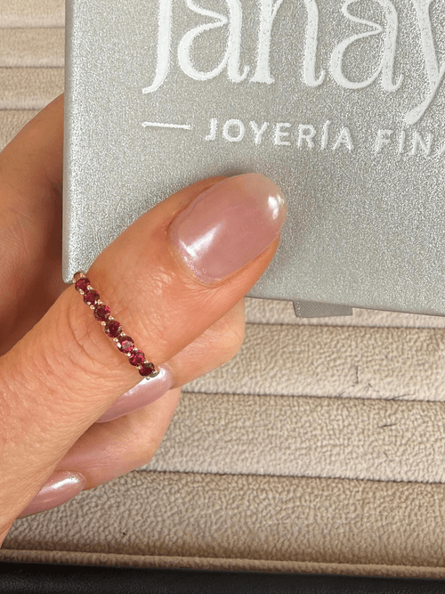 Esta churumbela en oro amarillo 14K destaca por su delicada hilera de rubíes naturales en corte redondo brillante, cuidadosamente engastados para lograr un brillo continuo y elegante. Su diseño fino y versátil la convierte en el complemento perfecto para usar todos los días o elevar cualquier look con un toque de color intenso y sofisticado.