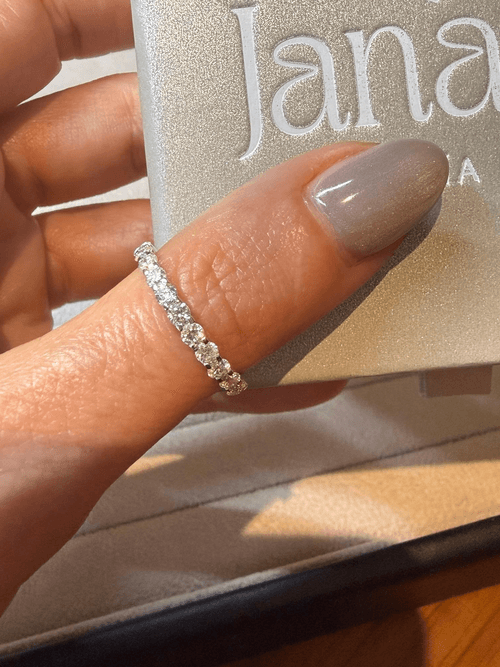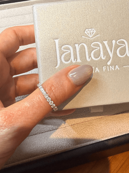 Ideal para usarse como anillo de eternidad, churumbela o para layering con anillo de compromiso.