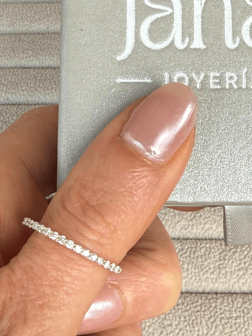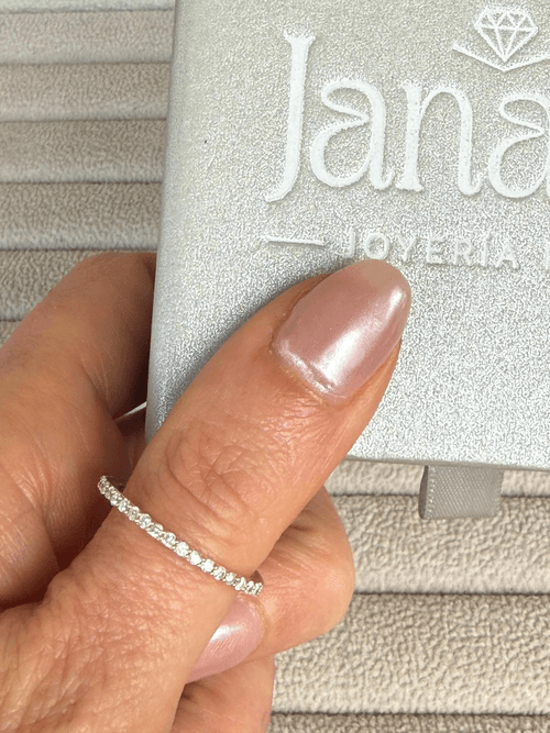 Delicada churumbela en oro amarillo 14K con una elegante hilera continua de diamantes corte brillante en engaste tipo pavé, creando un efecto de luz uniforme y sofisticado. Su diseño fino y atemporal la convierte en la pieza ideal para llevar sola o en combinación (stacking), aportando un brillo sutil pero constante que realza cualquier estilo. Perfecta como símbolo de eternidad o complemento diario de lujo discreto.