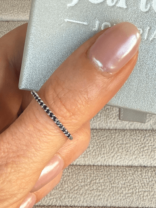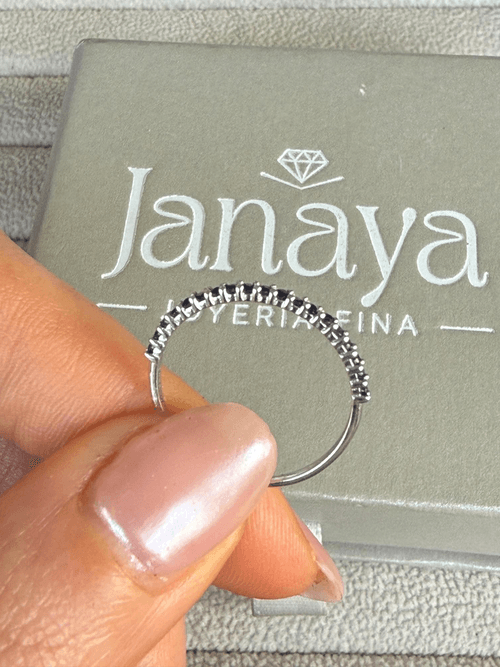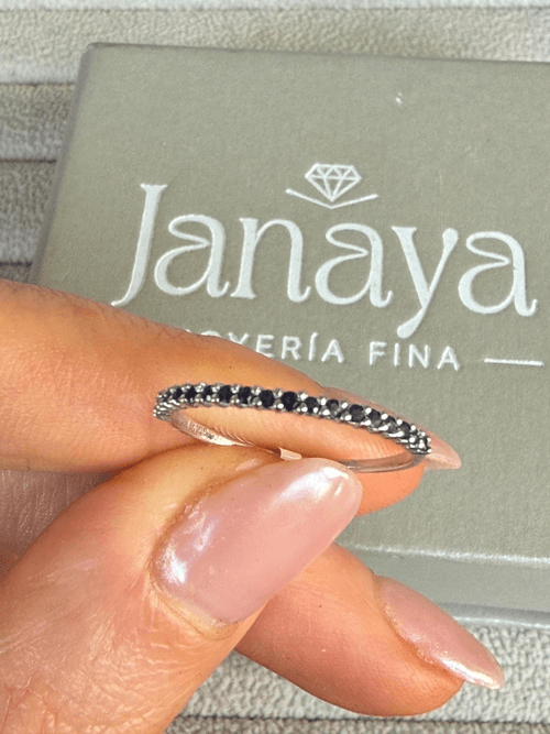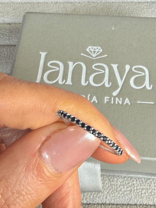 Delicada churumbela elaborada en oro blanco, engastada con una línea continua de zafiros naturales en corte redondo, cuidadosamente montados en micro garras que realzan su intensidad azul profunda. Su diseño fino y minimalista la convierte en una pieza perfecta para llevar sola o en combinación (stacking), aportando un toque sofisticado, moderno y atemporal.