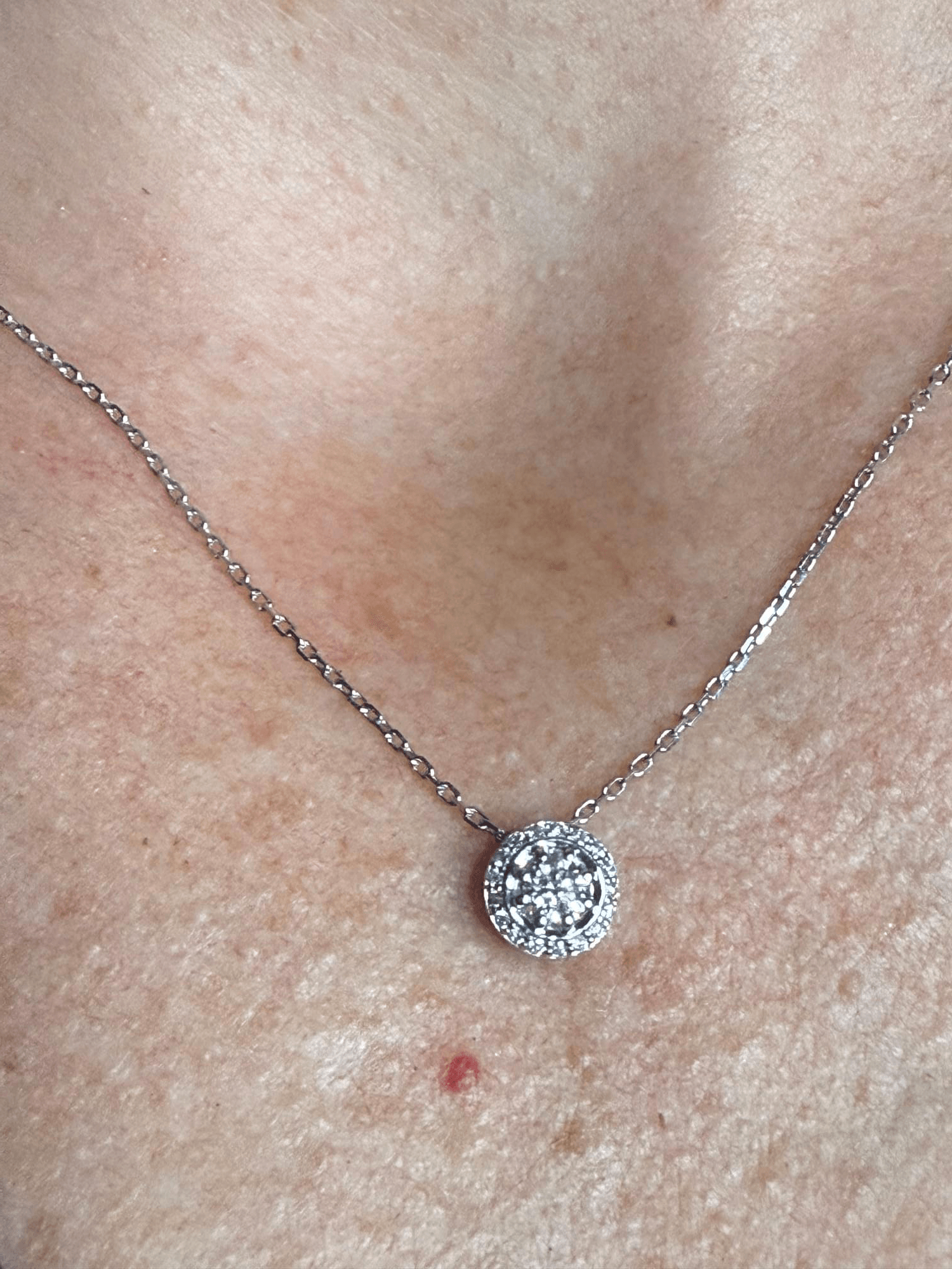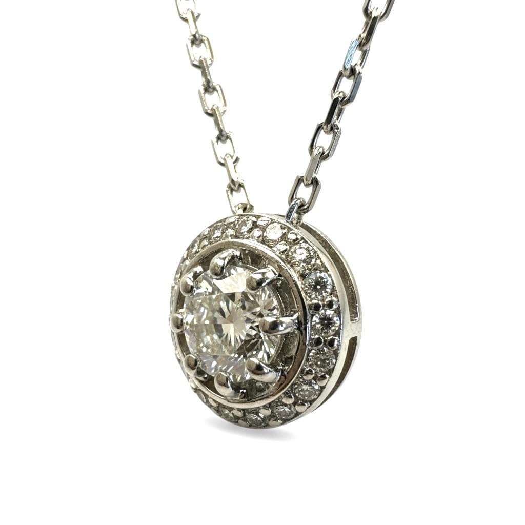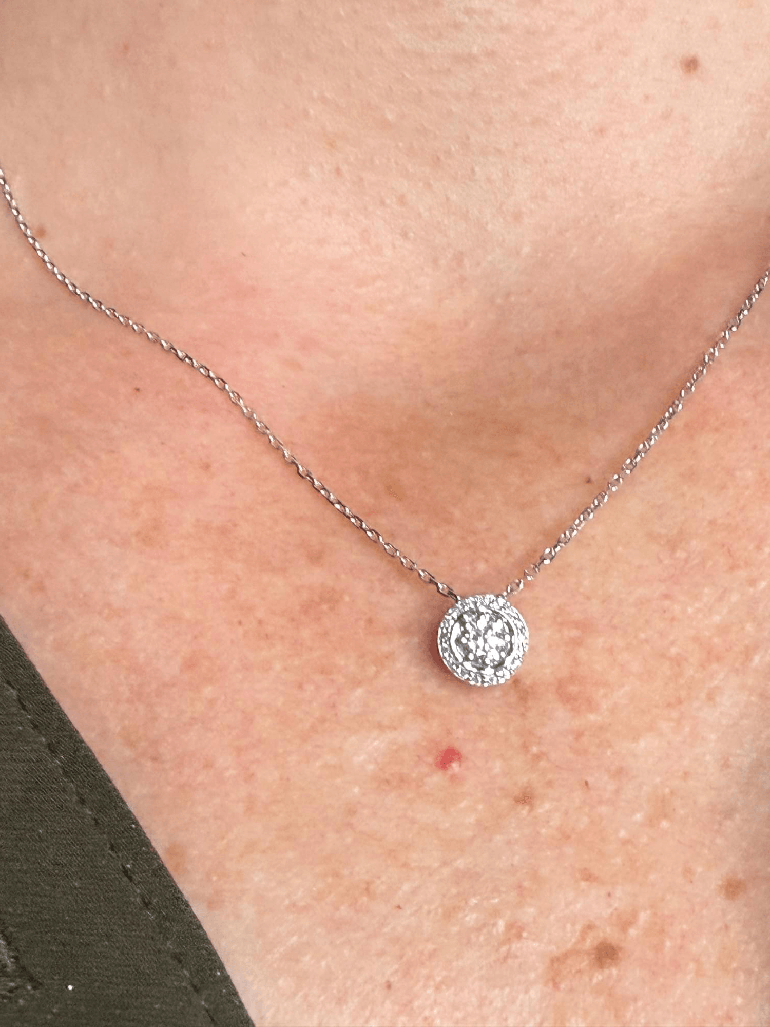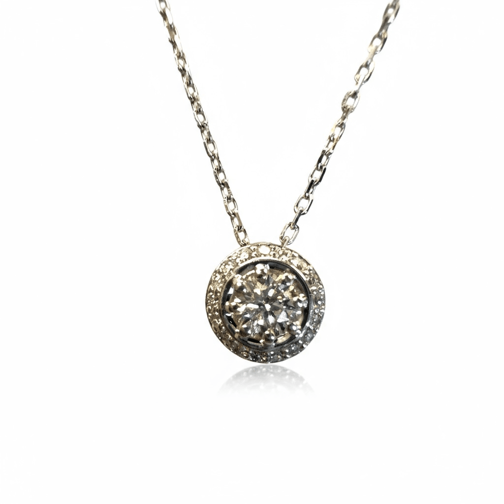 El diseño suspendido en una cadena de oro blanco de 14 quilates aporta un aire moderno y sofisticado, ideal para usar todos los días o en ocasiones especiales.