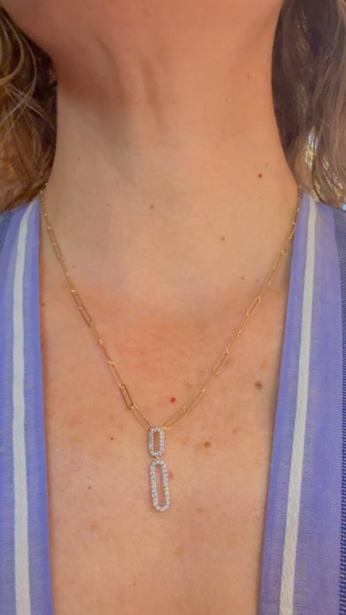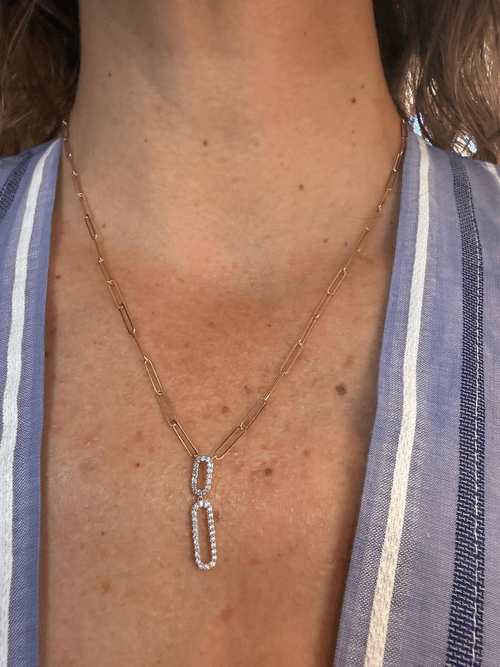 Una joya de líneas limpias que redefine el clásico paper clip con un toque de alta joyería.