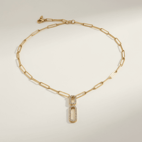 Cadena tipo paper clip elaborada en oro amarillo 14K, diseñada con eslabones alargados y proporciones perfectamente equilibradas.