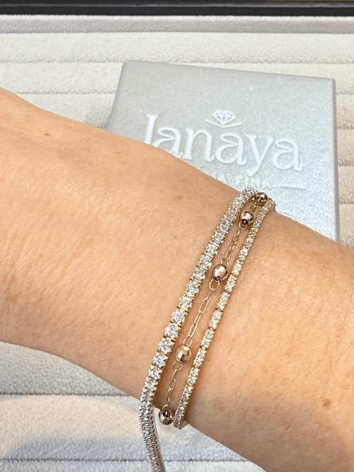 Su estructura articulada brinda flexibilidad y ajuste perfecto a la muñeca, creando una silueta fina, sofisticada y atemporal. Una pieza esencial de alta joyería que eleva desde un look diario hasta una ocasión especial.